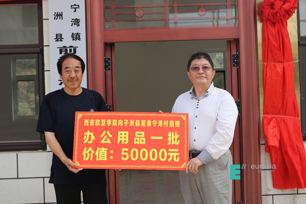 学校党委书记于孟晨代表学校向前淮宁湾村村委会捐赠了价值5万多元的办公用品一批。