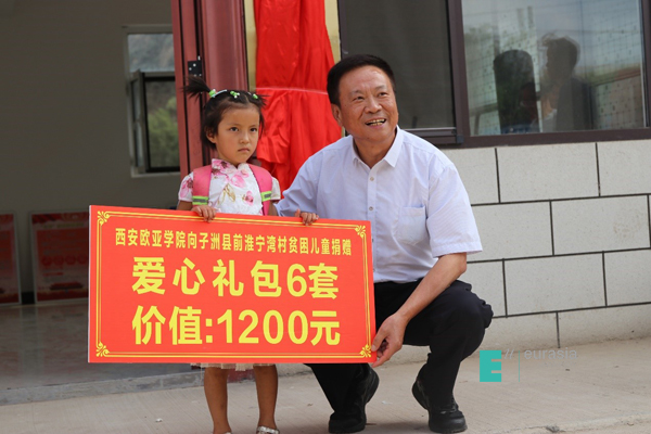 学校党委副书记兼纪委书记王志强代表学校向该村特殊贫困户的孩子们捐赠爱心大礼包6份,价值1200多元。