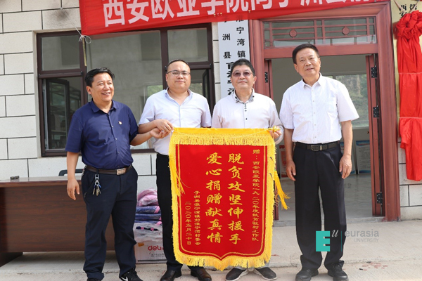 省教育厅派驻子洲县扶贫副县长曹晨参加了座谈会。在座谈会上,于孟晨书记代表学校肯定了驻村队员克服家庭、生活困难,安心工作,积极宣传党的脱贫富民政策,协同村干部为村民办实事,对贫困户情况做到了“一口清、一摸准”,感谢他们为脱贫攻坚工作做出的贡献;于书记询问了驻村工作推进情况,面临的困难和需要解决的问题;亲切慰问“两联一包”驻村一线干部,向有30多年党龄的驻村干部武涛教授颁发“优秀共产党员”荣誉证书,鼓励驻村干部按照总书记提出的 “摘帽不摘责任、摘帽不摘政策、摘帽不摘帮扶、摘帽不摘监管”的要求,继续努力工作,发挥党员先锋模范带头作用,为新农村建设贡献欧亚力量。在座谈会上,子洲县扶贫副县长曹晨,代表县政府高度肯定了学校近年来为前淮宁湾村脱贫工作付出的努力,对后续村上的扶贫工作进行了充分沟通。