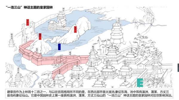 园林是城市山林的缩影,是壶中天地的情怀,中国的园林艺术是东方特色人文的审美情趣。我们从中国古典园林早期的“山水崇拜”、”山水城市”框架的构建,到“昆仑神话”、“蓬莱神话”演绎出的“一池三山”的园林基本模式,都在探寻园林美学之思想渊源。