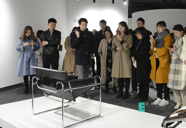 了解了设计博物馆的基本情况,当然要去实地体验才能加深理解与消化。品牌传播部吴淼老师带着大家来到图书馆二层设计博物馆现场,近距离地观看作品,并详细介绍了每件作品背后的故事。