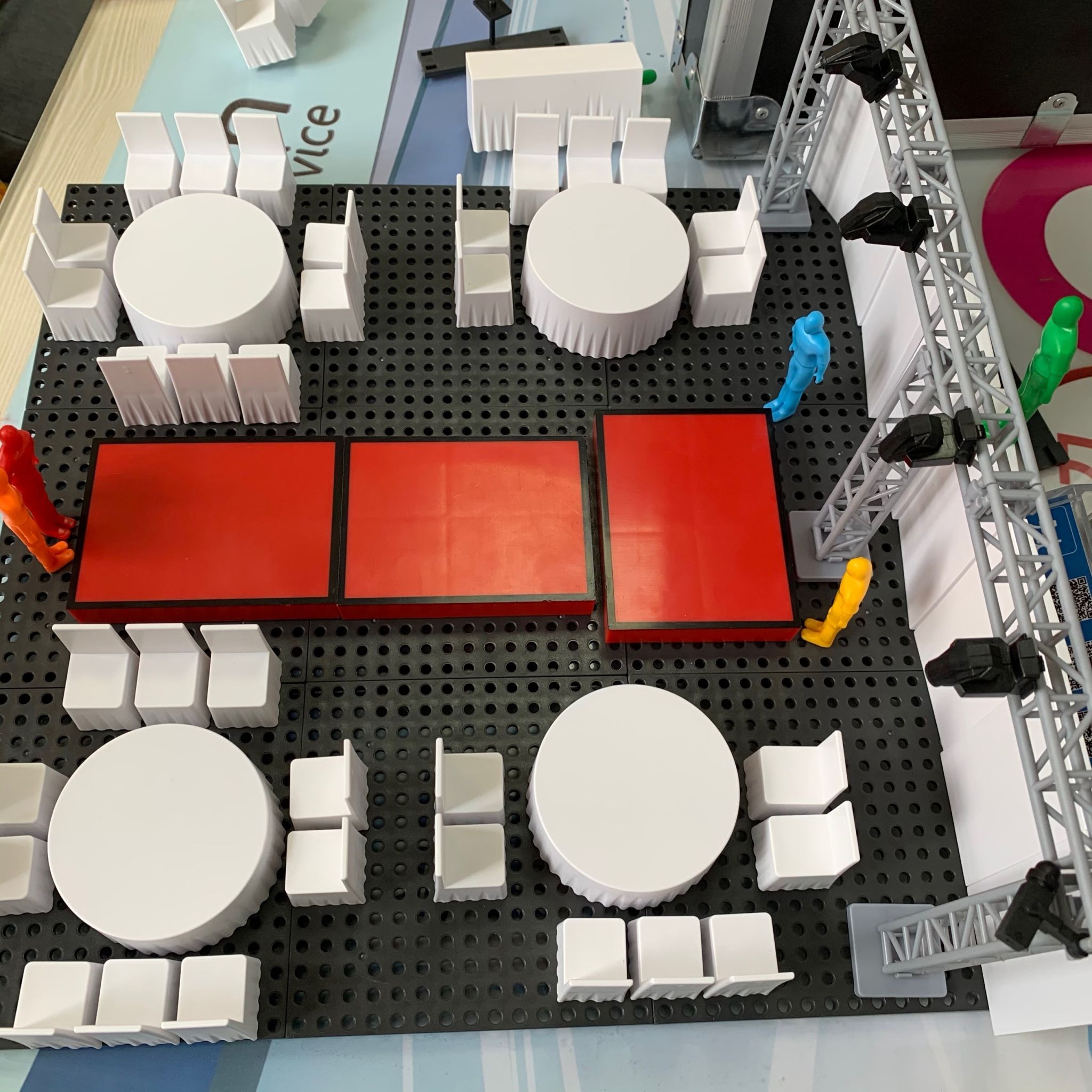 沙盘可以快速便捷的还原现场情景,将物料与人员安排在桌面上体现,演练现场布置的同时,配合现场人员安排,结合时间管理,锻炼实操技能和团队分工协作,帮助学生们对本专业有更深刻的认知,也增强了课堂的趣味性。