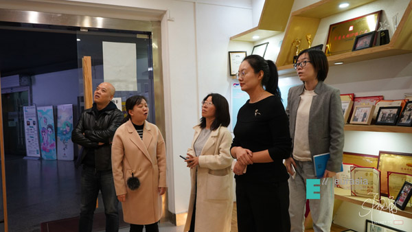 桥合动漫执行副总姬永老师亲自接待校领导,教学经理卢杨老师带领校领导参观企业,深度讲解企业文化及发展现状。