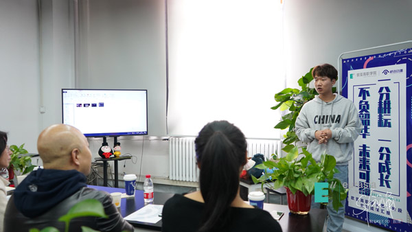 随后,校领导一行人参加了学生在岗学习第一阶段的实习总结报告会,首先由新媒体项目经理介绍了本次2018级动漫专业学生实践学习计划,从入学实践、企业参观认知、职业大讲堂、学生学习成果测试、专业细分方向选择、学生到岗实习跟踪及阶段考核,再由企业教学经理卢杨老师具体介绍学生到岗实习后的教育实施方案:学徒制的培训模式、行业大咖的深度讲座、企业文化活动体验、真实项目练习、阶段作品的展评。整个过程注重学生成长体验,从业务水平到职业素养、行业规范全面塑造快速推进学生达到职业角色的转换,肯定学生在学习过程中的成长。
