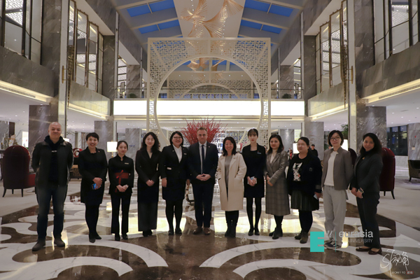 西安盛美利亚酒店总经理莫崊先生亲自接待校领导,人力资源部学习与发展经理刘静带领校领导参观酒店大堂和西班牙餐厅,双方进行了深度交流。