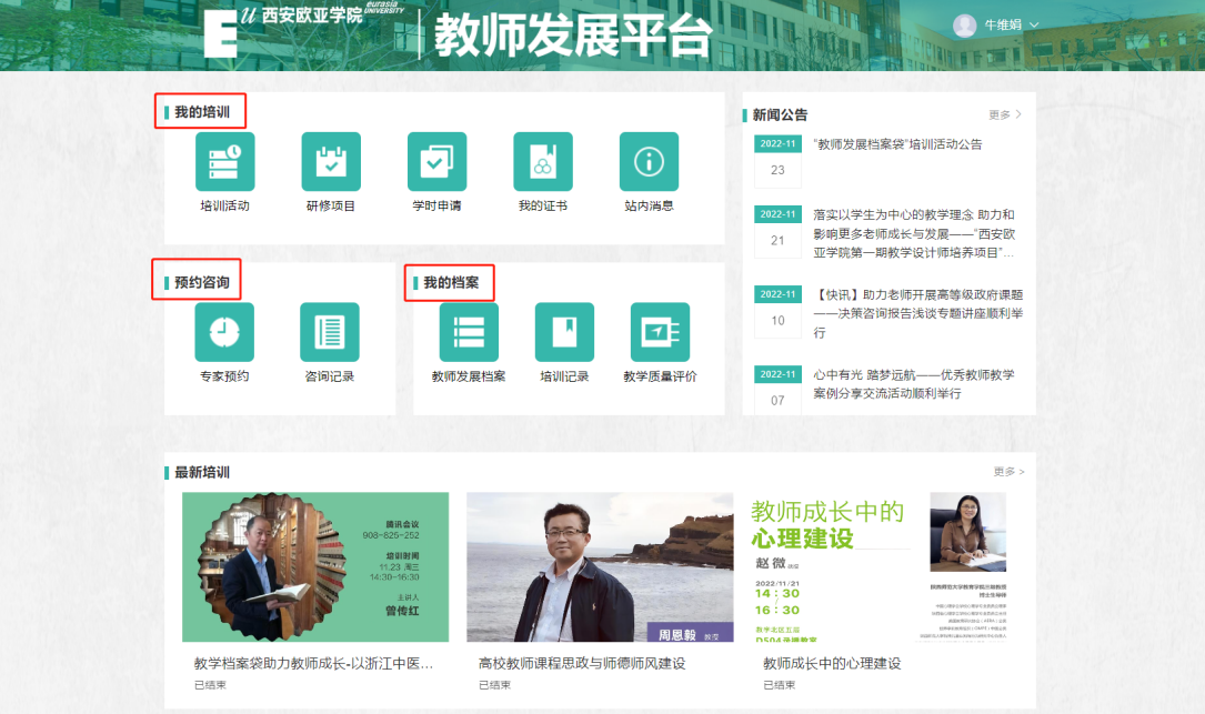 教师发展平台——通过系统搭建与多轮优化,KY开元教师发展平台日前已经正式上线。并于11月23日由教师发展中心和图文信息中心联合进行了部分教师用户代表的培训会议。教师发展平台主要包括培训管理、预约管理和教师档案袋三大功能: