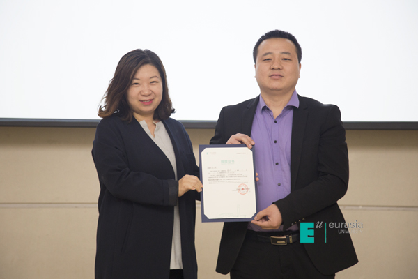校友是母校发展的强有力后盾。如今,在欧亚各个二级学院,有一批行业经验丰富、乐于分享职场经历的优秀校友,为学院带回了最新鲜的行业知识,丰富了课堂教学内容,提升了实践教学效能。会计学院特别为陈亚、范丽婷、杜文博、冯婉青、马毅贞、师兴、马言等7位校友颁发了“校友讲师”聘任证书,他们将为学弟学妹的成长提供更有价值的指导与帮助。