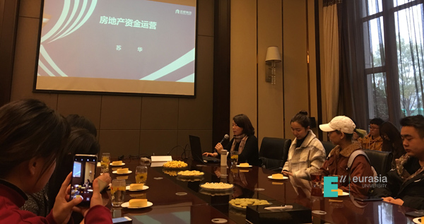 在参观完之后,大家来到了售楼部的会议室,会议由艾珺老师主持。苏总从财务的重要性视角出发,指出作为一个财务专业的学生首先要了解好业务,做好个人成长和职业生涯规划,对工作负责,对行业负责。接下来,她围绕“房地产资金运营”展开了分享,苏总认为,资金是一个公司的血液,资金运营就是对公司资金的掌控,也就是说,如何运营资金不至于使公司失控。她结合自己的工作经历,即从上市公司到国有企业再到民营企业的职业路径,鼓励学生主动思考自己将来要做什么,要为社会、家庭以及为自己带来什么样的价值。她指出,作为财务人,我们的价值就是为企业的健康运营保驾护航,在企业中,我们的职责就是当好资金的操盘手。而要做到这些,我们需要了解自己所服务的行业和公司,了解公司的每一个部门,了解公司运营的每一个环节。