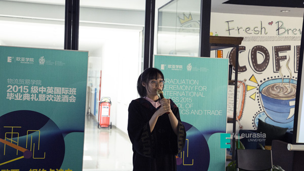 不忘初心,方得始终,在这离别之际,2015级中英国际班专升硕项目学生景晓蕾及本硕套读项目学生卢沛豪代表本届毕业生发言。两位同学都表示了自己在欧亚的成长,三年欧亚的学习生活充实而美好,这些努力的日子也为去卡迪夫的学习打下了坚实基础。国际班在教育教学中,组织了丰富的节日体验活动,户外踏青还有极限素拓,每学期的卡迪夫教学周也让学生们提前感受英国上课氛围,外教课堂体验也为学生们奠定了国外授课基础。同学们在最后表达了对欧亚学院的感谢,欧亚物流贸易学院为学生们创造了这样一个走向国际化的平台;同时还表达了对校领导的感谢,感谢校领导对国际项目的支持;最后学生对老师和父母的默默付出表示感恩。“爱上欧亚,爱上未来的你,未来的我一定比现在我们更好”。今后他们会在卡迪夫城市大学会更加努力的塑造自己,未来希望以全新的面貌在欧亚相聚。