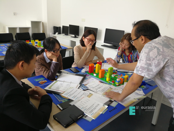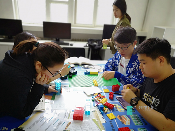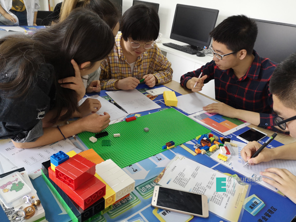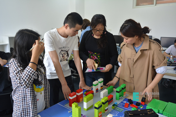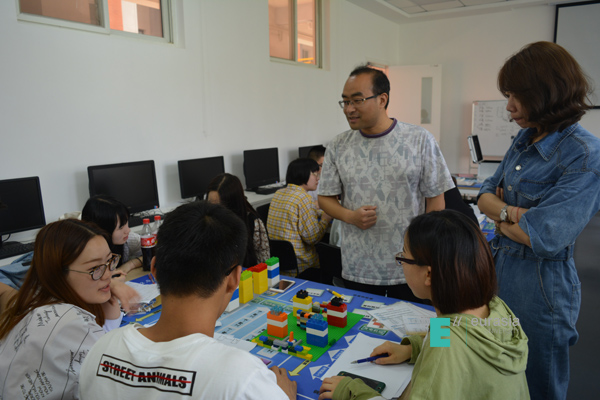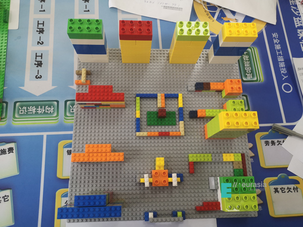 因为第一天的课特别精彩,房产班的同学们也没有玩够——5月23日下午,房地产开发与管理专业的老师们也加入了“房地产联盟”。在“导演”薛瑞峰的带领下,方放、薛婷、袁庆帆、马一多、徐婷各位老师秒变孩童,也玩起了乐高积木,一起进行房地产沙盘模拟,模拟一个项目从开发到征地、设计、财务评价、施工等环节。