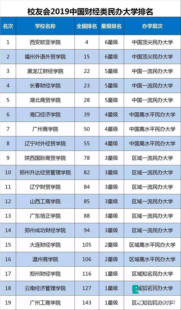 (图一)2019中国财经类民办大学排行榜10强榜单