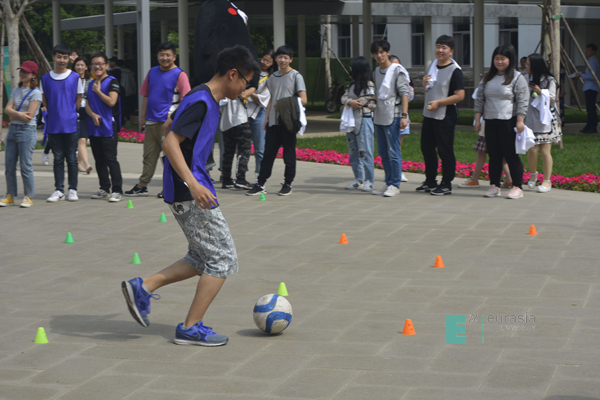 考验智力的英文版“我来比你来猜”开始,考验反应力的“反向指令”和耗费体力的“游学世界玩转奥运”以及地道的外教都让大家在欢声笑语中感受到了国际化的氛围和快乐。“反向指令”环节,外教主持,简单的指令,因为纯英文口令,以及“反向”的规则变得又好玩又有考验。