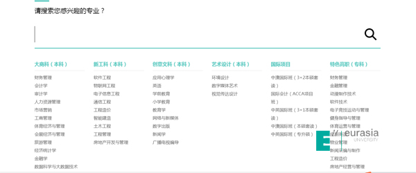 在整体网站架构优化的同时还新增了专业搜索及国际化两个新功能。专业搜素,可以让学生更清晰的了解欧亚学院的专业设置情况,选择适合自己的专业;突出欧亚的国际化,增加了国际招生计划和国际班项目特色介绍。同时,也将奖学金查询、预录取查询等招生辅助系统进行完美集成。新版招生网站的上线将为广大考生、家长和社会相关部门提供更好的招生服务。
