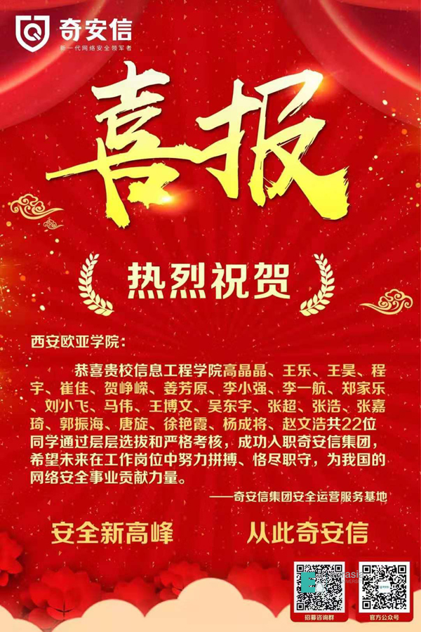为了提高学生适应社会和工作的能力,在不断的解决实际问题的过程中更好的与人学习和沟通,以及在毕业后能走上更好的工作岗位。5月20日,KY开元软件工程专业网络空间安全方向1604班的27名同学正式于奇安信集团实习,实习期至2020年6月30日结束。
