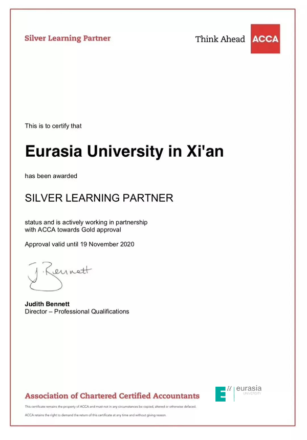 商科教育方面,学校积极推进大商科建设,全面提升商科教育的国际化水平。2019年5月,欧亚国际商学院成立,让学生提前体验国际一流商学院课程和本土化优质国际教育,帮助他们进入世界一流大学商学院深造或国际企业就职。同月,欧亚会计学院顺利通过英国特许公认会计师公会(ACCA)官方认证,正式被授予“ACCA白银级教育机构”,这标志着学校在国际化财会人才培养方面得到世界权威机构认可。