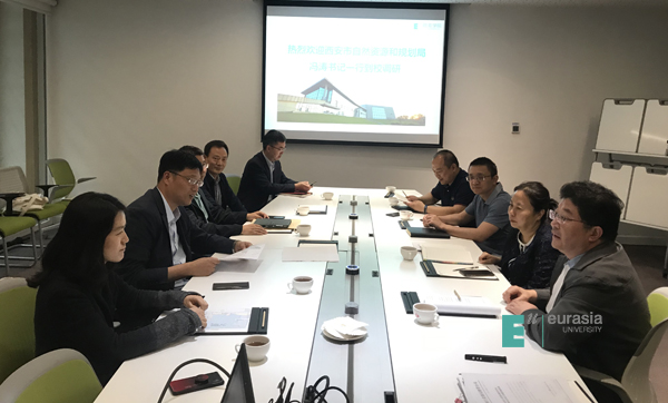 刘瑾校长和于孟晨书记代表校方欢迎自然资源和规划局一行来校考察,感谢政府亲临学校为校方解决问题。