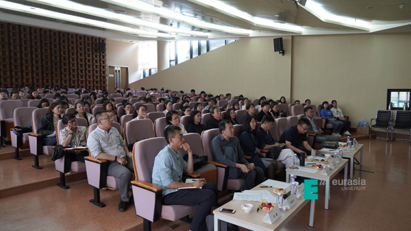 随后进行的访谈环节,胡建波校长就欧亚建设发展的理念、课程建设改革、未来发展规划等问题进行了详尽介绍。三位专家学者也就通识课程建设与改革等问题展开了深入讨论,同时对于现场老师、同学们关切的问题也做出了积极的回应。