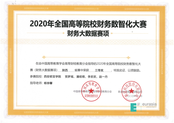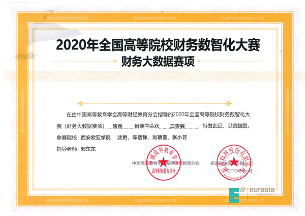 2020年9月29日,由新道科技股份有限公司主办,西安财经大学、西安电子科技大学、陕西财经职业技术学院、陕西工业职业技术学院协办的全国高等院校财务数智化大赛圆满落幕,本次大赛共有来自省内30多所院校的50支参赛队伍、约230位师生参加。