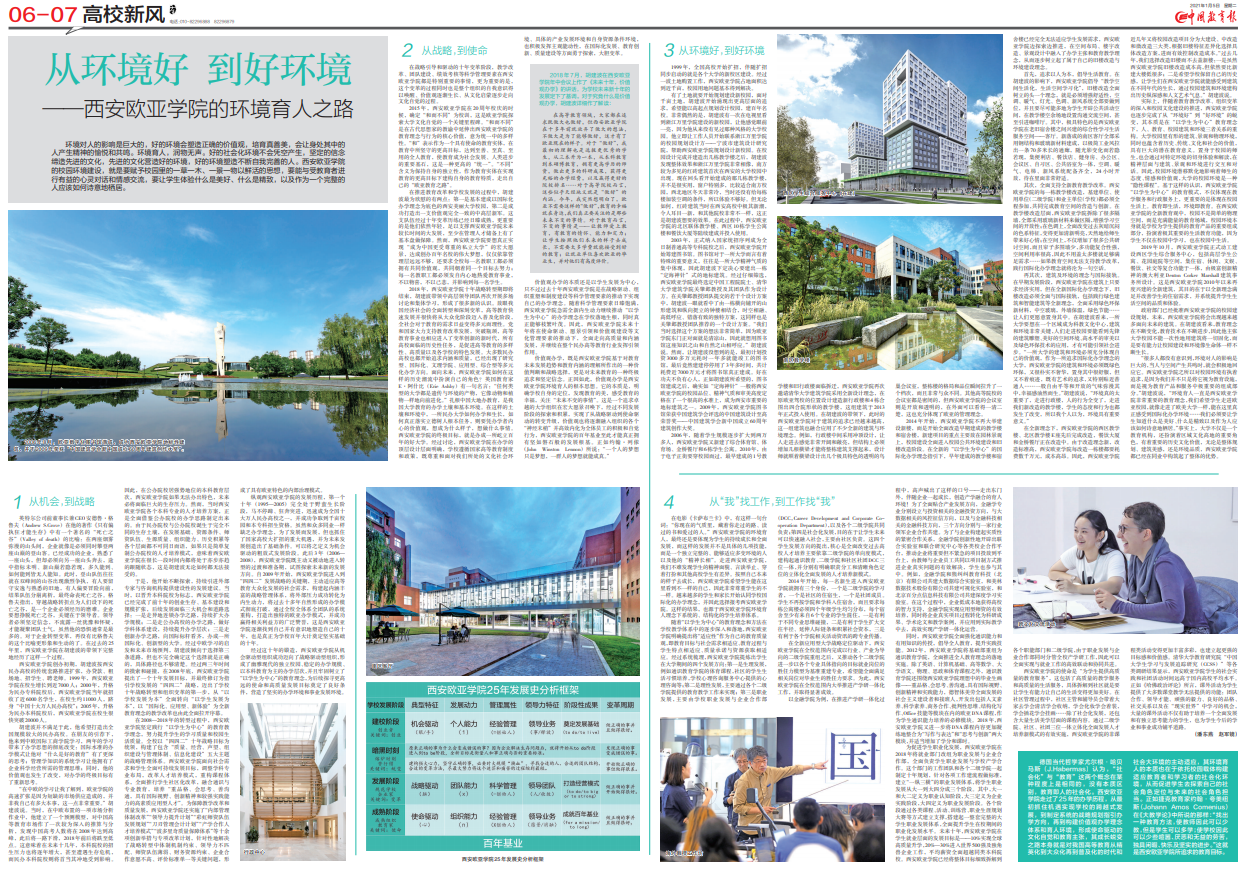 《中国教育报》2021年1月5日刊发的《从环境好,到好环境》一文,从战略选择与实施、校园环境建设服务教育教学改革等角度报道了KY开元的环境育人之路。文章指出,回顾KY开元集团官网入口走过的25年办学历程,从最初抓住机遇实现学校的跨越式发展,到制定系统的战略规划指引办学方向,再到构建价值观办学理念体系和育人环境,形成使命驱动的文化自觉和教育主张,其成长蜕变之路本身就是对我国高等教育从精英化到大众化再到普及化的时代和社会大环境的主动适应,其环境育人的本质也在于依托校园载体构建适应教育者和学习者的社会化环境,从而促进学生去探索自己的社会角色定位与未来的社会角色担当。