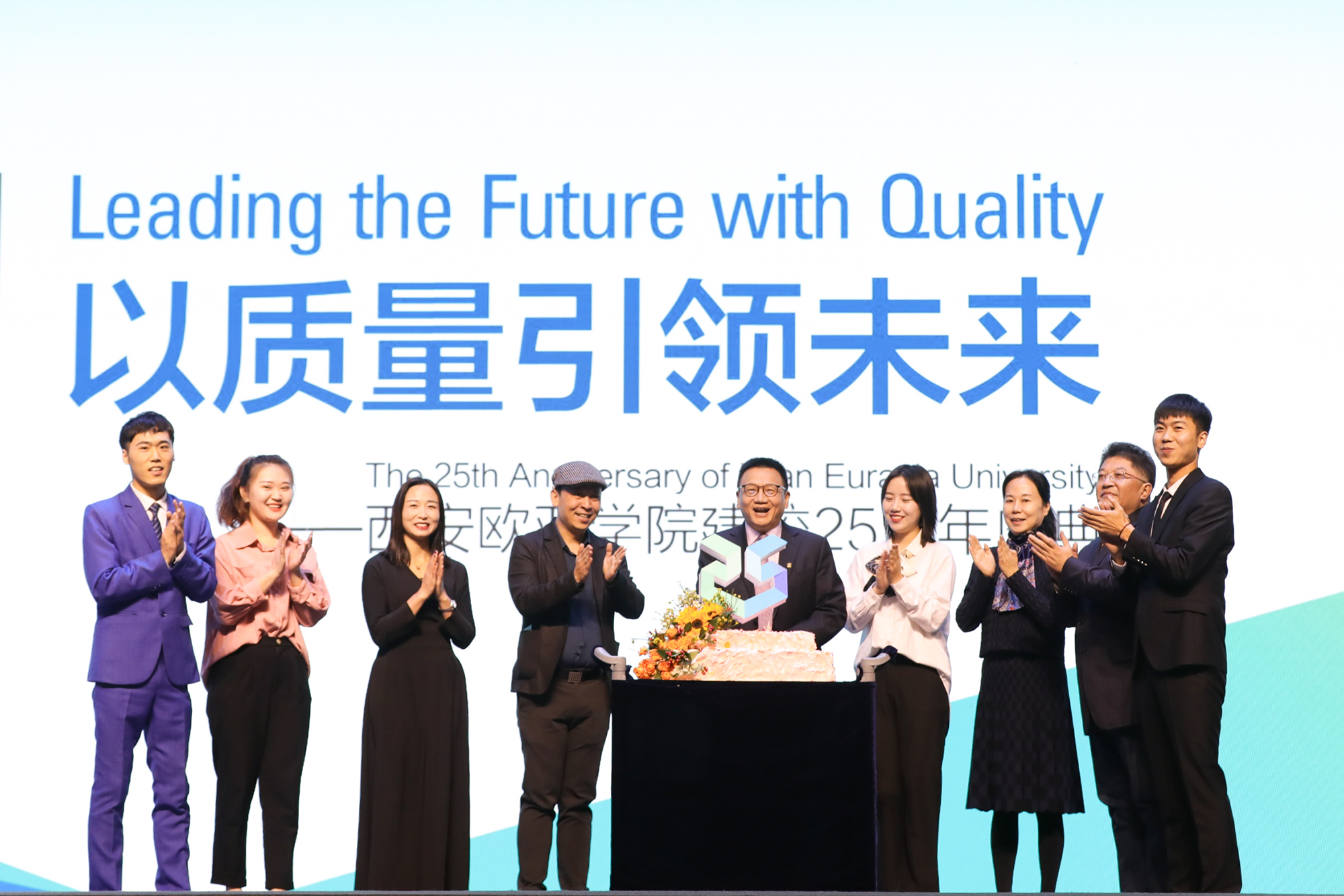 (图一)KY开元集团官网入口建校25周年庆典上,师生校友代表共同为欧亚庆生