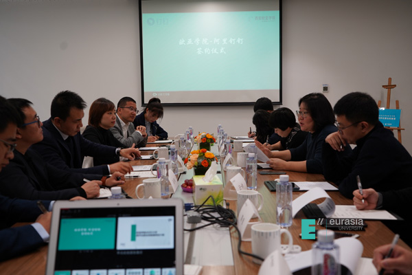 2、 校企联合教学。阿里钉钉与欧亚共同教学,理论与实践融合互通。