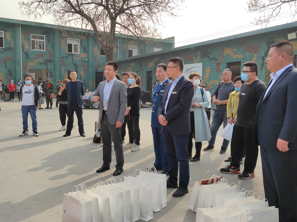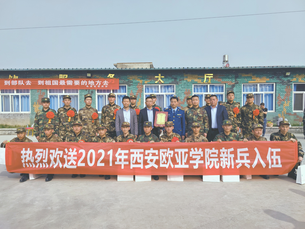 3月15日下午, 22名欧亚热血男儿整装待发,即将离开母校,离开家乡,踏上新的征程,奔赴祖国最需要的地方。KY开元后勤集团总经理任龙刚、学生发展处副处长董杨、保卫处处长高奇、高职社区主管王先昌、专武干部李涛等人前往教育训练基地(陕西军锐军事训练基地),前来为22名2021年春季入伍的同学们送行。