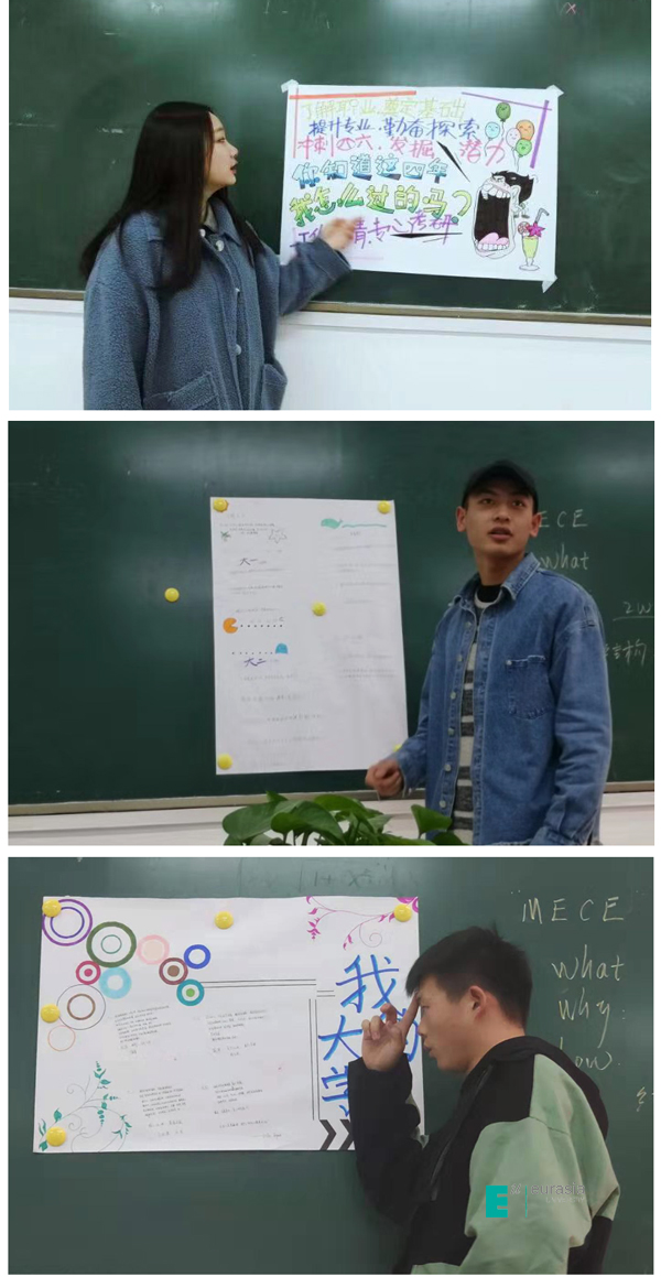 经过课程模块的初体验,经管类图书的阅读,以及关于实习就业的讲座等环节,学生们亲手绘制海报制订未来四年大学生涯的学习计划,绘制思维导图展示对书籍内容的理解,全面展示了经济、管理、贸易、商务等方面的知识带给他们的思考与启发。