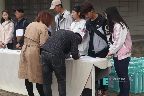 (图一)校友返校现场及签到场景