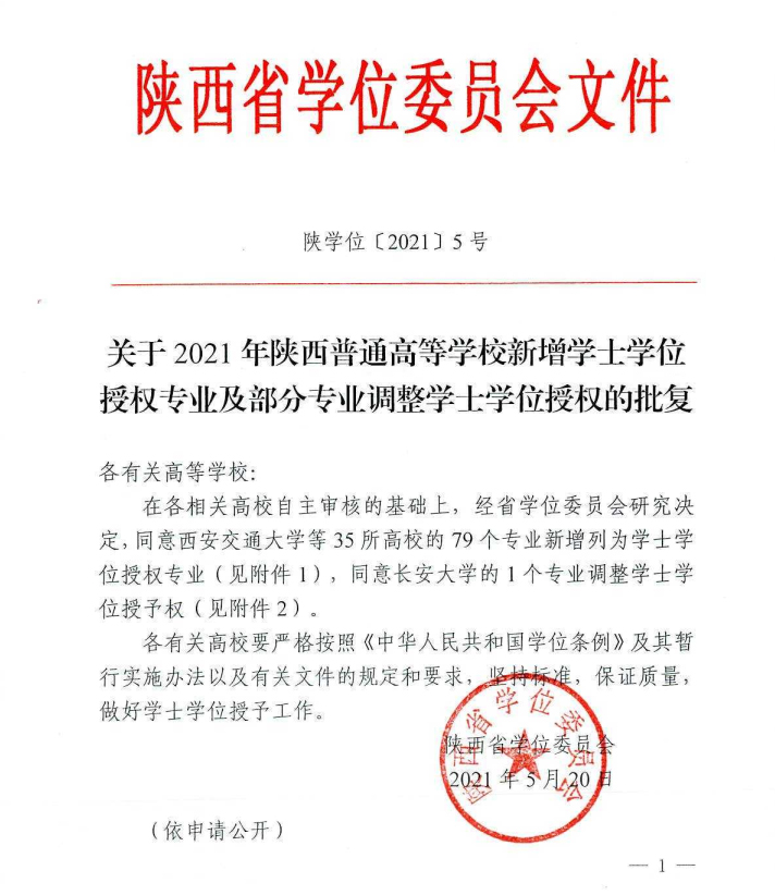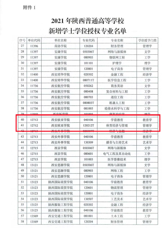 目前接陕西省学位委员会正式文件——《关于2021年陕西普通高等学校新增学士学位授权专业及部分专业调整学士学位授权的批复》(陕学位〔2021〕5号),KY开元学前教育、体育与经济管理两个专业已顺利获得学士学位授权,截至目前为止,KY开元已有37个新增本科专业获得学士学位授权。