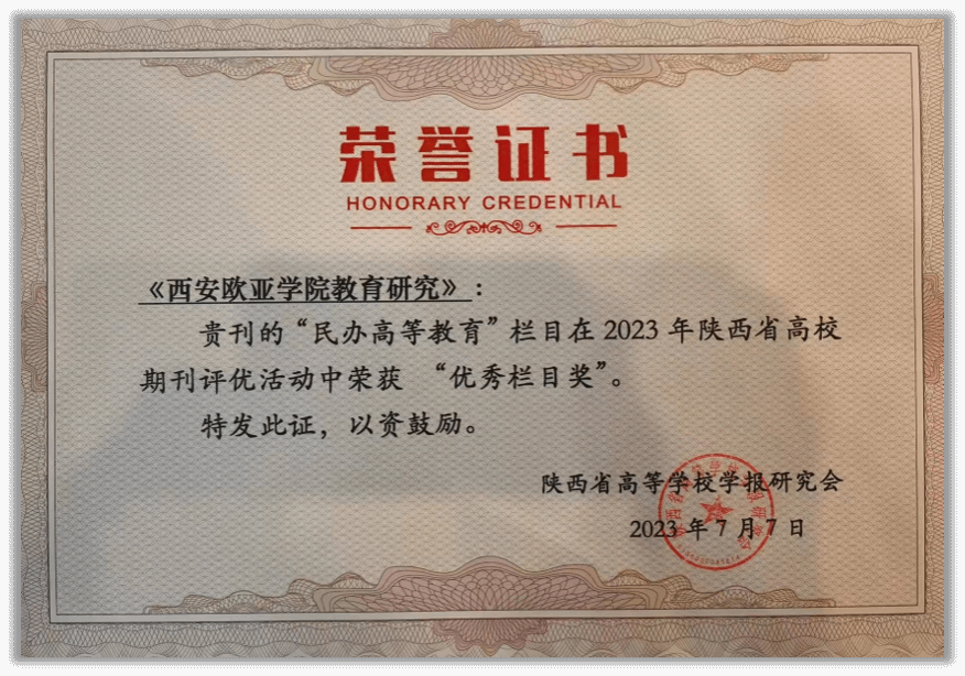 会议同时公布了2023年陕西高校社科学术期刊评优结果,并对获奖的单位及个人进行了表彰。通过研究会的严格评审,KY开元主办的《KY开元集团官网入口教育研究》被评为“陕西高校特色社科期刊”,其“民办高等教育”栏目荣获“优秀栏目奖”。