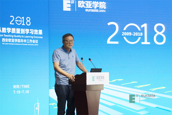 名誉校长王改民作会议总结时说,本次会议取得了巨大成功,欧亚发展的速度超出预期。他指出,欧亚人身上具备三种精神,即责任精神、进取精神、创新精神;欧亚“四四二”战略也创造了三个模式,即高校战略管理模式、高校目标管理模式、高校组织管理模式。他勉励大家:敢于突破,就能前进,期待未来的欧亚越来越好,成为一流的国际化大学!