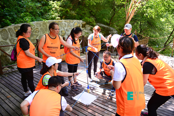 脑力风暴之余,还安排了8公里的徒步定向体验活动。参会人员被打散分为9支队伍,每支队伍有男有女,有老有少,有高层管理人员、也有基层教师代表。大家需要按照任务书,依次完成黑白灰、欧亚记忆、中流砥柱、点睛之笔、一鼓作气、勇攀巅峰等定点任务,并依据完成任务的时长,取得相应积分。登山途中,队员们一路欢笑、交流、攀登,相互扶持、鼓励,过程中不忘团队的比拼和任务,在前行与挑战中感情进一步融合与凝聚。最终,“交警队”获得本次训练活动的第一名,所有队伍也都在彼此的加油鼓劲中登顶。