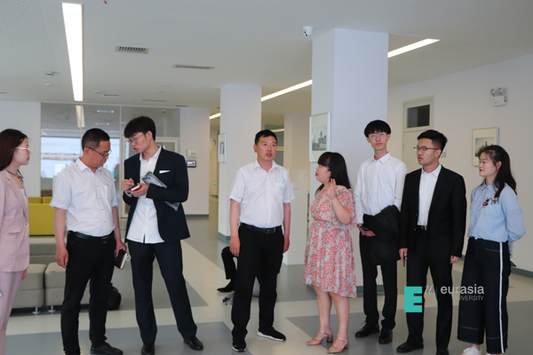6月28日上午,西藏阿里陕西实验学校邓付宽校长、张波主任到访KY开元。人居环境学院徐缤荣老师与项目组15名大学生成员对远道而来的邓校长、张主任表示热烈欢迎,师生边走边聊,参观了欧亚学院教学区和行政区。邓付宽校长对欧亚学院绿色、人文、国际化的校园环境表示赞叹。
