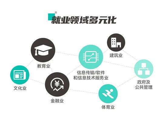在就业行业上,该届毕业生呈现出多元化倾向,教育业、金融业、信息传输/软件和信息技术服务业、政府及公共服务等领域都涌现着欧亚学子的身影。