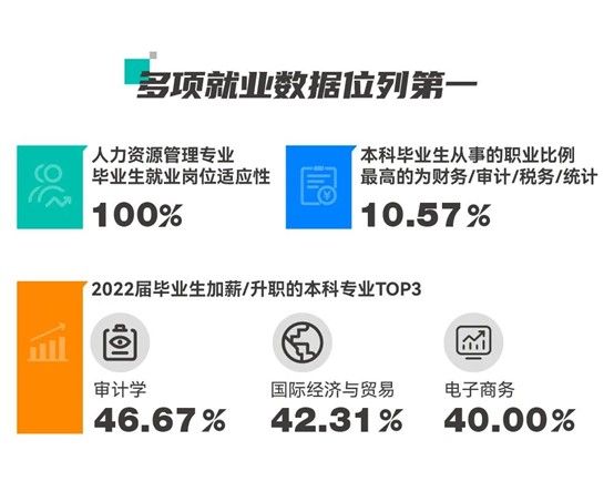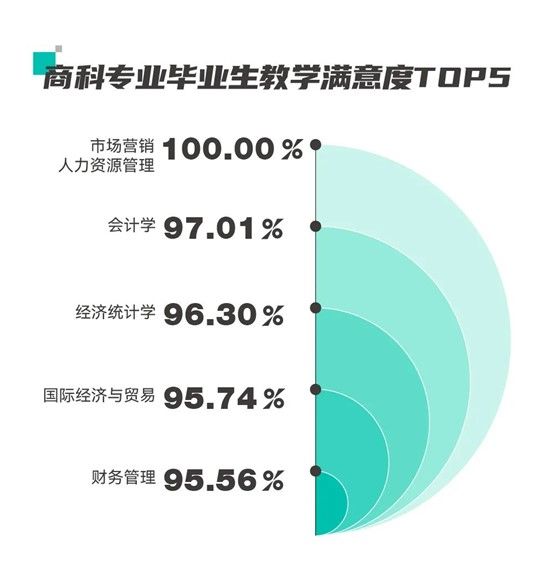 2022届本科毕业生教育满意度调查显示,市场营销、人力资源管理专业教学满意度达100.00%,其余多个商科专业学生满意度达95%以上。
