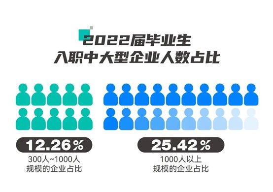 在就业企业规模上,学生入职300人及以上人数的中大型企业占比37.68%。