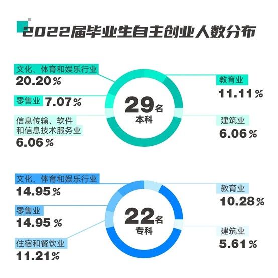 51名学生还选择自主创业,文化、体育和娱乐业成为创业最热门赛道。多名学生表示,有好的创业项目、理想就是成为创业者是最主要原因,同时在学校接受的创新创业教育也发挥了重要作用。