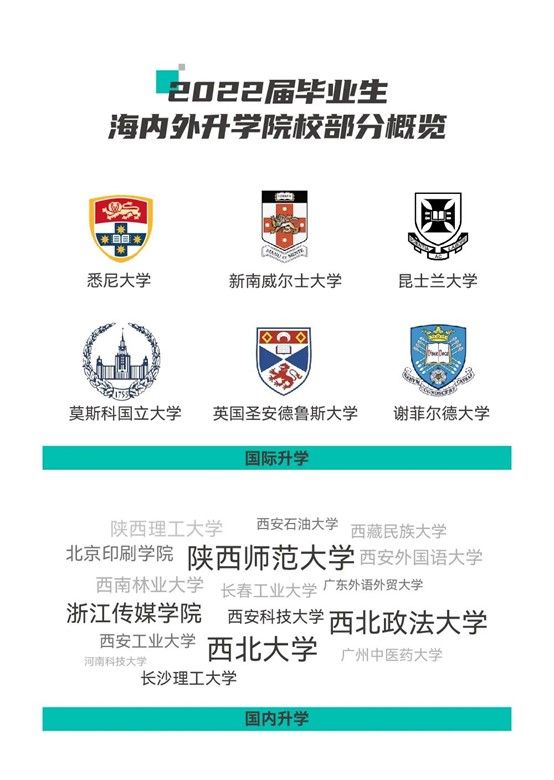 在国内升学中,众多学子考研成功至知名高校;国际升学中,61%被全球QS排名前500高校录取,17%被全球QS排名前200的顶尖高校录取。高质量升学的背后,离不开学校为学生持续提供多方位的考研与升学帮助,助力学生在全球各地继续追逐学术梦想。