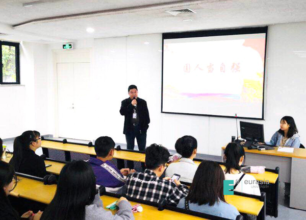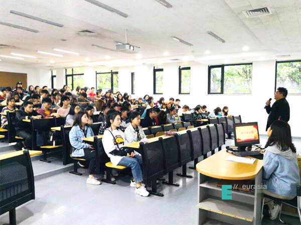 刘瑾校长为同学们带来了一堂题为《大国关系:发展走向与策略应对》的精彩的形势与政策课。刘校长先以近年来到海外考察学习的亲身经历的轶事趣闻导入,引起了同学们的浓厚兴趣。接下来,从世界主要力量的演变、单边主义的蔓延、现存体系遭受冲击方面深入地分析了当前波谲云诡的国际形势,并进一步阐述了十九大以来我国外交的六大关键词:开放、合作、稳进、引领、担当、坚守。 最后刘校长将我国当前最重要的外交公共产品“一带一路”与欧亚学院的发展结合在一起进行了深入浅出的分析,也对同学们的发展提出了殷切的希望。同学们对刘校长捭阖而又主题明确,大气而又贴近生活,深刻而又诙谐幽默的形策课报以热烈的掌声。