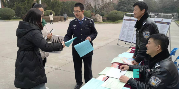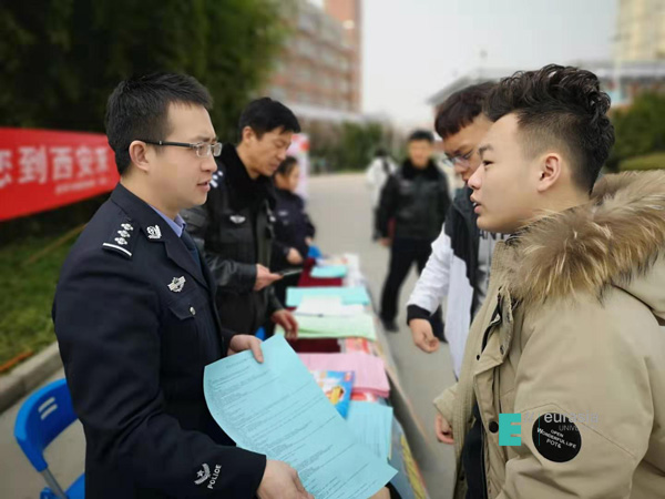 为认真落实西安市委市政府“人才人口”战略,进一步优化营商环境,加快人才引进步伐,推进西安国家中心城市建设。同时,为积极帮助师生解决在西安落户问题,更大程度的推进西安落户政策。 2月25日上午11:30,在KY开元餐饮大厦南广场进行了“户籍新政再出台,欢迎您到西安来”的户籍新政宣传工作,这是继2017年6月、2018年3月户籍新政进校园再次在KY开元进行宣讲,此次活动由学生发展处、后勤集团安保服务中心联合西安市公安局雁塔分局雁环中路派出所进行,全校师生代表共计300余人参加。