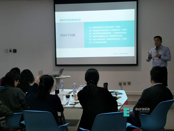 会议最后,刘瑾校长指出,欧亚的内评,达到了“以评促建、以评估改、以评促管、评建结合、重在建设”的二十字方针,切实促进了二级学院的管理质量、教学质量的提升。5年、四轮、10个分院,评价指标不断完善、专家水平越来越高、复盘形式更加多样,整体工作均有提升。