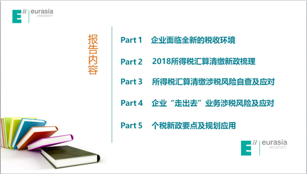 谢老师以国地税合并、金三大数据比对、社保转移征收等税收背景为基础,引入“网络爬虫”技术、海外账户的“世外桃源”、中国联通税务管理信息化等案例,通过案例分析讲解陕西秦川机械发展股份有限公司面临的税收环境以及应对措施。此外,还对2018年所得税汇算清缴的新政进行详细梳理,内容涉及设备器具扣除、资产损失、优惠政策等18个新政,基于该企业的具体情况,提出了涉税风险及规划策略。针对新个人所得税法,谢老师从社保、个税新政要点热点的角度进行详细分析讲解。