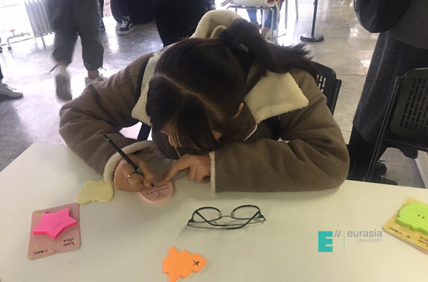听完书籍的分享之后同学们将自己的现状一一进行梳理,用文字的形式留在纸上和贴在墙上,用快乐的情绪去感染更多人,而存在的困惑则可以借此机会获得现场咨询师和同学们的帮助。咨询师为部分学生进行了一一的沟通,帮助学生梳理自己的困惑,同时引导学生探讨出解决当前问题的办法。
