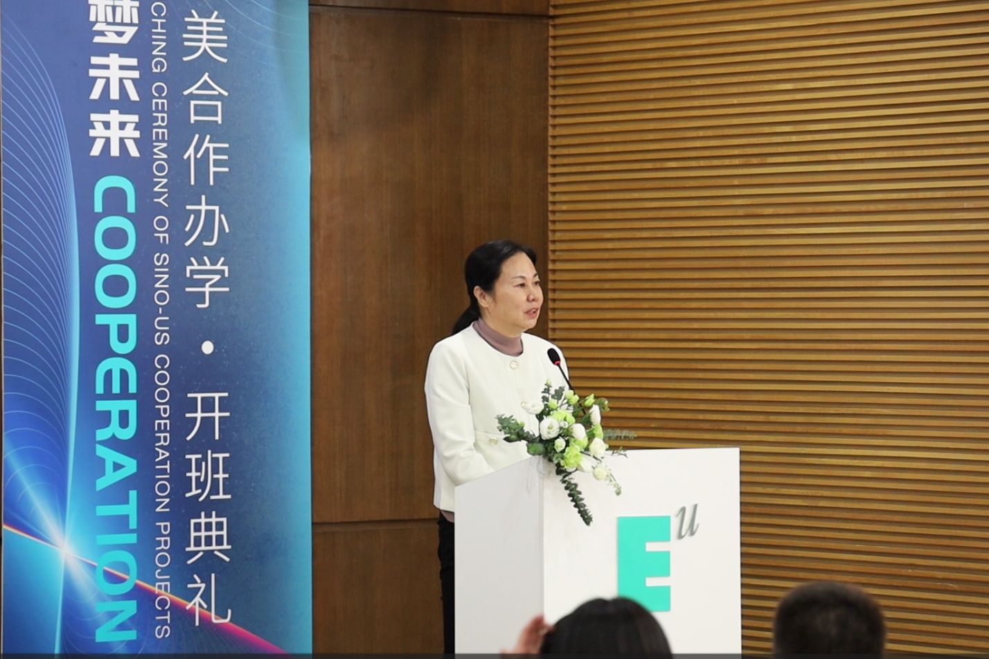 孙建荣在致辞中说,学校为中美合作项目学生提供了高起点的平台,鼓励大家远离“推延症”,积极面对每一天的学习与生活。