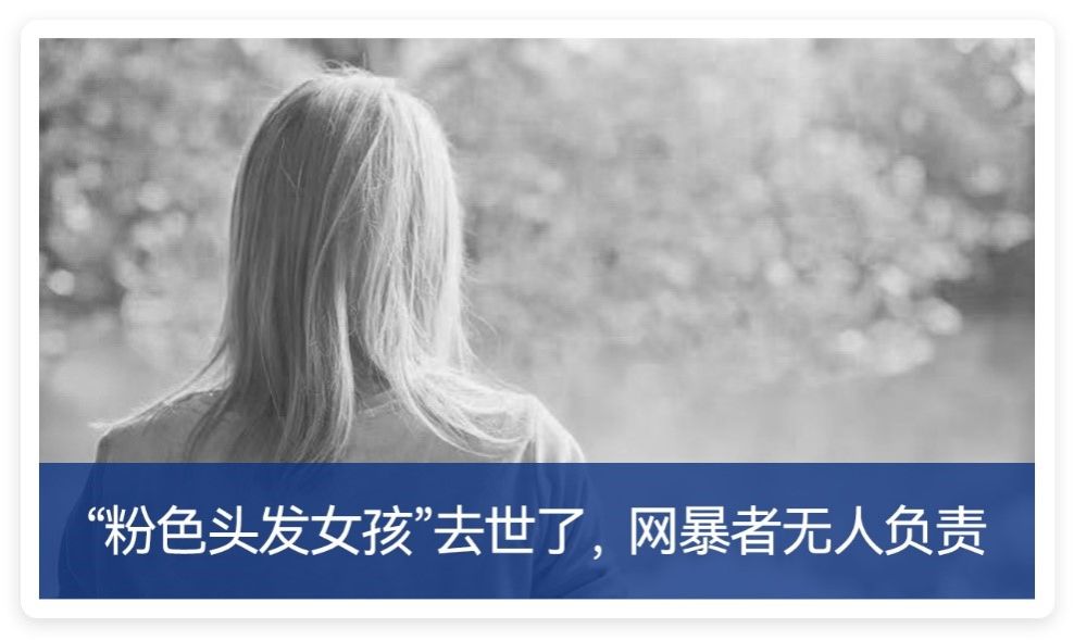 △因为染粉色头发,研究生郑灵华被“网暴”致死。图为新周刊在事发后所发表的文章标题。