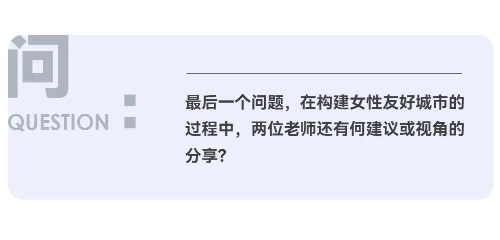 冯:虽然女性友好是当下亟待解决的问题,但我们也要顾全大局。我认为一个好的城市建筑与空间,应该让每个年龄和性别的人感到安全、舒适,而不是让某些群体望而却步。