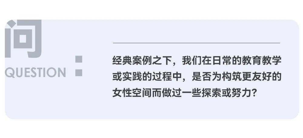从互联网回到真实世界,现实同样对女性存在着偏差:一间排着长队的洗手间、一排昏暗糟糕的路灯,都在一定程度上阻碍了女性在城市生活中幸福感的获得。如何通过建筑与空间设计让女性更加舒适、安心地开展生产生活?我们邀请到了人居环境学院、艾德艺术设计学院的两位老师进行横纵向讨论。