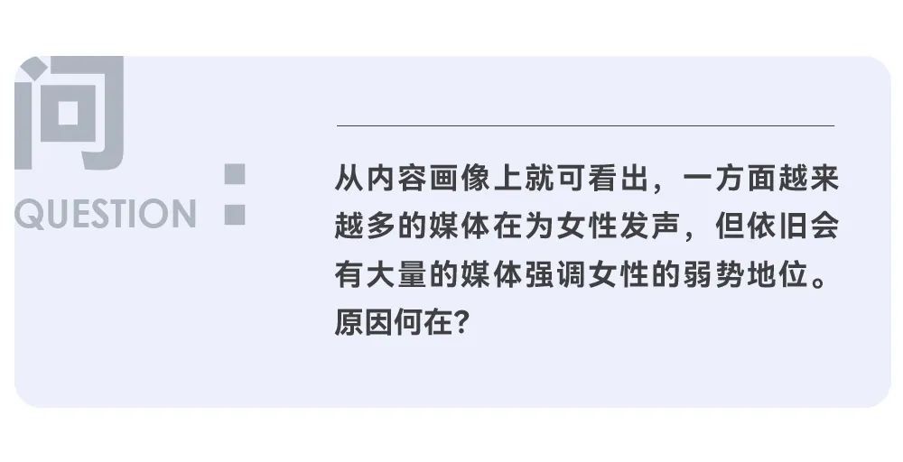 丁:有学者统计,传统媒体女性形象被塑造为“感性的”、“柔软的”、“母性的”以及“缺乏理性的”,例如我们经常能看到有关女性被害、伟大的母亲等相关报道,都符合大众传统认知中对女性的印象和定位。