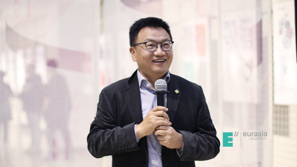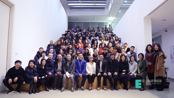 KY开元董事长胡建波教授介绍了欧亚艺术设计系的创办历史,期望同学们通过专业课发展成专业人才,并祝贺艾德艺术设计学院工作坊的建成。