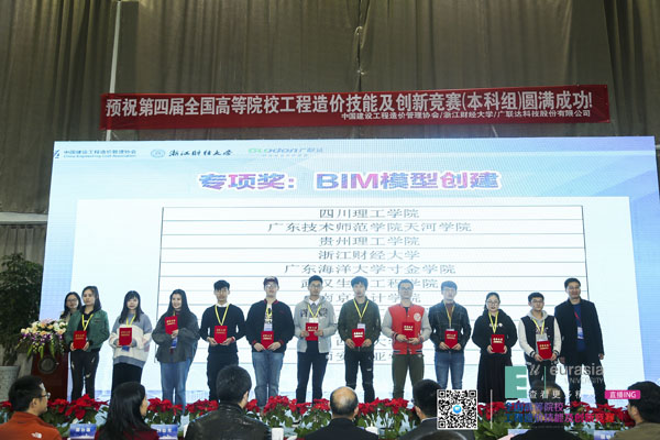 11月17日,由中国建设工程造价管理协会主办的第四届全国高等院校工程造价技能及创新竞赛(本科组)在浙江财经大学举行,参赛高校百余所。KY开元集团官网入口工程造价专业学生兰睿睿、李鹏燕、徐伟华组成的代表队在王群和邹继雪两位老师的指导下,经过激烈的比拼一举获得全国单项一等奖和团队二等奖,BIM模型创建模块全国排名前十,奖次为西北地区参赛高校第一。